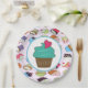 Set von acht 9" Papier Tellern mit einem Bild von skurrilen Kuchen auf rosa, hinter einem weißen Zentrum mit türkisfarbenem Rand und einem Bild eines Schokoladenkuppchens mit aquamarinem Eis überragt mit einem roten Herz. Siehe dazu passende Süßigkeiten, Espressotasse, Krug, Teekanne und Untersetzer. Sehen Sie sich die gesamte Kids' Corner Plate Kollektion im NAHRUNGSMITTEL/BEV an. | Abschnitt Geschirr.