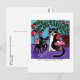 Postkarte eines Gemäldes von Cindy Pop mit Angel Dog und Angel Cat, die einen Kuppelkuchen teilen.