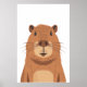 Eine charmante Abbildung einer Capybara, die direkt nach vorn blickt, mit einem ruhigen und sanften Ausdruck. Das Bild zeigt die einzigartigen Merkmale der Capybara, einschließlich ihres runden Gesichts, ihrer ausdrucksvollen Augen und ihrer unverwechselbaren Whiskers. Der minimalistische Stil und die erdigen Farbtöne verleihen dem Hotel ein sehr ansprechendes Aussehen, das für die Liebhaber von Tieren visuell ist.