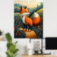 Curious Fox in Meadow - Naïf Whimsical Wildlife Poster