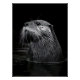 Discover the charming expressiveness of wildlife with this captivating portrait of a sea otter, captured in a stunning monochromatic style. The image highlights the details of its wet fur and curious whiskers as it looks upwards from the water's surface. The dark background enhances its form, creating an artistic and emotional composition. Perfect for marine life enthusiasts, animal photography lovers, and those seeking a minimalist yet poignant art piece.