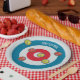 Eine Vektorgrafik, die das Haus einer Curling-Blatt mit Curling-Steinen um das zentrale Ziel zeigt. Design für jeden, der den Wintersport des Curlings Liebe.