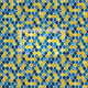 Stoffe mit ogee Fliesen, die in Blau- und Gelbtönen auf weißem Untergrund verziert sind. Ideal für Curler und Curling-Fans.