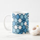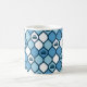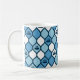 Tasse mit einem ogee Fliesenmuster mit Curling-Felsen in Blau-Weiß-Tönen. Ideal für Curler und Curling-Fans.