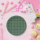 Bunte Papierplatte getan im klassischen karierten Muster grünen, gelben und weißen schottischen Clan Currie Tartan. Fertigen Sie besonders an, um Text dieser großen gemusterten Platte hinzuzufügen. Vervollkommnen Sie für Picknicks, Partys und Feiertage. Zusammenpassende Papierservietten verfügbar.