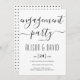 Cursive Skripttypografie Hochzeitsengagement Party Einladung. Die Rückseite weist ein geometrisches Schwarz-Weiß-Muster auf.