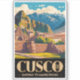 Cusco Retro-Vektor-Reisedesign. Cusco ist eine historische Stadt in den peruanischen Anden, bekannt als ehemalige Hauptstadt des Inka-Reiches und das Tor zu Machu Picchu. Mit Kopfsteinpflasterstraßen, kolonialer Architektur und reichem indigenen Erbe bietet es eine fesselnde Mischung aus Geschichte und Berglandschaft.