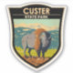 Customer Staat Park Kunstwerke in einem Abzeichen Stil Design. Es ist ein South Dakota Staat Park und Wildlife Reserve in den Black Hills.