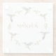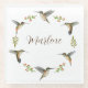 Hübscher, individueller Untersetzer mit einem handbemalten Aquarellkranz botanischer Äste und Allen's Hummingbirds auf weißem Hintergrund. Der Stil des Schriftartes, die Größe des Schriftartes und die Farbe können durch Klicken auf "Design bearbeiten" geändert werden.