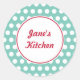 Die Aufkleber im Retrostil sind mit einem Aqua- und Weiß-Polka-Dot-Muster dekoriert. Passen Sie diese Aufkleber an, um Ihren Bedürfnissen Anzug. Benutzen Sie diesen Stilaufkleber für eine Bäckerei, ein Geschäft, eine Küche, Essensbehälter, Handwerk, Produkte, Verpackungen, eine Geburtstagsparty, Brautparty, etc...Das Design stammt aus der Originalkunst.