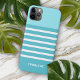 Moderne minimalistische helle aqua grün und aquamarin türkisblau gefärbte horizontale Streifen Muster. Mit Raum zum Anpassen mit einem Namen, Monogramm oder Initialen Ihrer Wahl. Schönes, modernes und cooles Cover für den Trend-geschickten und kunstliebenden angesagten Trendsetter, künstlerischer Motif-Liebhaber, der will, ihr Handy vor Staub und Schmutz, Abnutzung und Tränen zu schützen. Dieses Design ist für Apple iPhone 6, 7, und 8 Plus, 10 oder X, XR, XS, 11, 12, 13 Mini, 14, 15 Plus und Pro Max Handy Hüllen erhältlich. Zeigen Sie Ihren Stil, sehen Sie modern aus und fühlen Sie sich stilvoll mit einem einzigartigen Design auf einem mobilen Zubehör Ihrer Wahl.