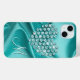Ein zeitgenössisches Bild eines Imitats glänzende Diamanten-Herz auf einem hellen türkisblauen, grün gefärbten Aqua-Bild von gewelltem Satin-Stoff. Mit Raum zum Anpassen oder Personalisieren mit einem Monogramm Ihrer Wahl. Schönes, modernes und cooles Cover für den Trend-geschickten und kunstliebenden angesagten Trendsetter, künstlerischer Motif-Liebhaber, der will, ihr Handy vor Staub und Schmutz, Abnutzung und Tränen zu schützen. Dieses Design ist erhältlich in Apple iPhone 6, 7, und 8 Plus, 10 oder X, XR, XS, 11, 12, 13 Mini, 14, 15 Plus, und Pro Max Handy Hüllen. Zeigen Sie Ihren Stil, sehen Sie in der Mode und fühlen Sie sich stilvoll mit einem einzigartigen Design auf einem mobilen Zubehör Ihrer Wahl.