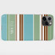 Zeitgenössisch aquamarin blau, schlaugrün, dunkelbraun und mittelbraun, Elfenbein cremefarbene Streifen Art Handy Gehäuse. Mit Raum zum Anpassen mit Namen, Monogramm oder Initialen Ihrer Wahl. Schönes, modernes und cooles Cover für den Trend-erfahrenen und kunstliebenden angesagten Trendsetter, künstlerischer Motiv-Liebhaber, der will, ihr Handy vor Staub und Schmutz, Abnutzung und Tränen zu schützen. Dieses Design ist erhältlich Apple iPhone 6, 7 und 8 Plus, 10 oder X, XR, XS , 11, 12, und 13 Mini und Pro Max Handy Hüllen. Zeigen Sie Ihren persönlichen Stil, sehen Sie modern aus und fühlen Sie sich stilvoll mit einem einzigartigen Design auf einem mobilen Zubehör Ihrer Wahl.