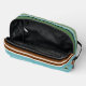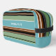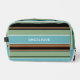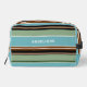 Dieses Design der Toilettentüte zeichnet sich durch ein atemberaubendes aquamarines Blau, Salbei, Dunkelbraun und mittelbraun aus, und durch das Design der horizontalen Streifen in Elfenbeincreme auf schwarzem Hintergrund. Die Vielfalt dieser Farbkombination erzeugt einen dynamischen und rhythmischen Effekt. Das Muster ist verziert und elegant, mit einer Touch von Funkness und Hipster Flair. Es gibt auch Raum für die Anpassung oder Personalisierung mit einem Monogramm oder eine Initial Ihrer Wahl. Ob Sie nach einem schicken und modernen Stil oder einem Vintagen Retro-Trend suchen, dieses Muster wird Ihren Geschmack und Ihre Persönlichkeit Anzug geben.