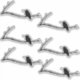 Silhouette von Kolibri, der auf einem bloßen Ast sitzt. Sechs individuelle Aufkleber pro Seite.