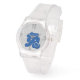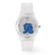 Maßgeschneidertes blaues Ideogramm des Kaninchens auf papiergesteuerter Abbildung als Hintergrund. Sie können das Jahr und die Farbe des Ideogramms ganz einfach ändern, indem Sie auf die Schaltfläche Anpassen klicken. Design auf Silicone Strap Clear Uhr mit jungen Stilnummern. Ideal für Chinesisches Neujahr des Kaninchens oder zum Geburtstag (Menschen geboren im Kaninchenjahr).
