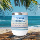 Cette photographie de plage pittoresque vin tumbler cadeau de Destin Florida présente le magnifique coucher de soleil rose et orange touchant doucement les vagues de l'océan au-dessus du sable et de l'herbe de mer. Magnifique souvenir de garde balnéaire pour un mariage de vacances ou de destination avec date de voyage personnalisée et nom de famille pour votre lieu de vacances préféré.