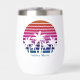 Vin de plage sur mesure pour une destination de mariage ou une maison de famille île près de l'océan. Un service personnalisé cool avec palmier tropical et joli rose et bleu et votre nom sous l'horizon côtier.