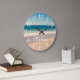 Custom Beach Photo and Text Große Wanduhr