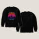 Cool matching girl's beach trip women's long sleeve t-shirts for an island cruise or coastal bachelorette party. Features beautiful palm trees in front of a pretty pink beach sunset on a black tee. Perfect custom shirts for your summer trip to the coast.
