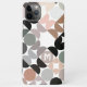 Schöne zeitgenössische Lila taupe beige, dunkelbraune, dunkelgraugrüne geometrische Kreise, Quadrate und Halbkreise Muster auf einem knackigen weißen Hintergrund. Mit der Option, um mit einem Namen Monogramm oder Initialen Ihrer Wahl anpassen oder personalisieren. Verziertes, elegantes, stilvolles und eklektisches Design für die extravagante künstlerische Mode, die künstlerische Modediva, den beliebten angesagten Trendsetter, den Vintagen Retro-Kunststil und den abstrakten, geometrischen Motiv-Liebhaber. Dieses Design ist erhältlich in Apple iPhone 6, 7, und 8 Plus, 10 oder X, XR, XS, 11, 12, 13 Mini, 14, 15 Plus, und Pro Max Handy Hüllen. Zeigen Sie Ihren Stil, sehen Sie in der Mode und fühlen Sie sich stilvoll mit einem einzigartigen Design auf einem mobilen Zubehör Ihrer Wahl.