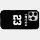 Fügen Sie einen Namen und eine(n) Nummer(n) hinzu, um diese inspirierte Handy-Hülle für Schwarz-Weiß-Sport-Trikots zu personalisieren. Es ist ein ausgezeichnetes Geschenk für einen sportlichen Fan oder Sportler. Es stehen die Optionen zur Farbänderung und zum Ändern der Schriftart-Größe zur Verfügung.