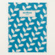 Custom Blue 70er Retro Leaf Muster Monogramm Planer
