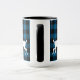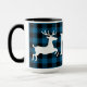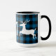 Schöner klassisch blauer und schwarzer Buffalo Karo mit weißem Hirschmuster Silhouette. Stilvolle rustikale Tasse mit Raum zum Anpassen oder Personalisieren mit einem Monogramm oder Initial Ihrer Wahl. Dekoratives, hübsches, modernes und trendiges Design. Und ein sehr cooles Geschenk für Mama zum Vater!