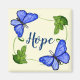 Die Kunst bietet zwei fliegende blaue Schmetterlinge über grünen Blätterweinen. Malerei in Aquarellfarbe. Passen Sie den Schriftart und die Wörter mit Ihrem eigenen Sprichwort oder Namen an!