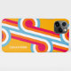 Schöne zeitgenössische hellblaue, rosa rote, orangefarbene und weiße geometrische Kreise und Linien Muster auf einem dunkelgelben Hintergrund. Mit der Option, um mit einem Namen, Monogramm oder Initialen Ihrer Wahl anzupassen oder zu personalisieren. Verziertes, elegantes, stilvolles und eklektisches Design für die extravagante künstlerische Mode, die künstlerische Modediva, den beliebten angesagten Trendsetter, den Vintagen Retro-Kunststil und den abstrakten, geometrischen Motiv-Liebhaber. Dieses Design ist erhältlich in Apple iPhone 6, 7, 8 Plus, 10 oder X, XR, XS, 11, 12, 13 Mini, 14, 15 Plus und Pro Max Handy Hüllen. Zeigen Sie Ihren Stil, sehen Sie in der Mode und fühlen Sie sich stilvoll mit einem einzigartigen Design auf einem mobilen Zubehör Ihrer Wahl.