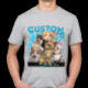 Machen Sie sich bereit, einen einzigartigen T - Shirt mit Ihren ganz eigenen Furbällen zu rocken! Dieses Design kanalisiert den Bootleg-Stil der 90er, mit einem coolen Blitzhintergrund und Platz für Ihr "Individuelle Name" und "CUSTOM Foto". Es ist der perfekte Weg, Ihre geliebten Katzen auf eine ganz einzigartige und edgy Art und Weise zu zeigen. Sie können das Shirt selbst anpassen, indem Sie das Zazzle-Entwurfstool verwenden. Die Produktseite führt Sie durch den Prozess. Wenn Sie nicht sicher sind, können wir Ihnen helfen, wenn Sie uns ein Foto Ihrer Katze und den Namen schicken. Genießen Sie Ihren Einkauf mit Zazzle.