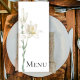 Perfect for garden weddings, romantic celebrations, and sophisticated outdoor events, this menu adds a polished, cohesive touch to your table settings. Easily customize with your meal selections, headings, and wording to reflect your unique dining experience.