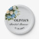 Custom Brautparty Elegant Blau und Weiß Blumen Pappteller
