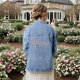 Celebrate your wedding weekend in "Quiet Luxury" with this personalized light-wash denim jacket. Designed for the modern bride who values minimalist elegance, this piece features sophisticated blush pink calligraphy paired with a clean ivory serif subtext.