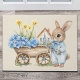 Die neue Blumen Blumen-Türmchen-Kollektion! Mit einem kleinen Kaninchen mit blauen Wildblumen, einem Holzkarren mit vielen blauen Wildblumen und einem kleinen Haus im Hintergrund bringt diese Türe jedem Zimmer Charme und Verspieltheit!