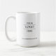 A double-sided coffee mug featuring your brand logo, customizable to your liking. Simply add your company logo to the circular white space designated for the image.