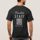 Custom Chocolate Festival Event Logo QR Code Staff T-Shirt with a sleek black and white design. Ideal for festival staff, volunteers, and crew who need clear identification at chocolate events, food festivals, and trade shows. Personalized for professional event use.