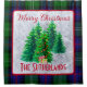 Basierend auf einem Hintergrund Ihres schottischen Sutherland Clan Tartan kariert ist ein weißer, eisigen Platz, mit fünf Aquarellbäumen verziert. Rote Bläschen und eingepackt präsentieren Set einen Baum auseinander. "Frohe Weihnachten" in einem roten Skript-Schriftart ist oben, und "The Sutherlands" in einem lustigen "all caps" Schriftart, ist auch rot, ist unten. Alle sind von einer breiten, roten Band umgeben, die sich gegen den grünen, blauen, roten und weißen Tartan kariert der Sutherland-Familie in Schottland und der ganzen Welt richtet. Personalisieren Sie Ihren Namen mit der Schreibweise Ihres Zweiges der großen Familie derzeit verwendet. Das beliebte karierte steht unter dem Urheberrecht von Crown aus dem schottischen Kartei der Tartans.