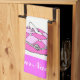 Ein individuelles Handtuch mit weißen Schriftzeichen auf rosa und Aschenputtel’s Glasscheibe auf einem Kissen in hellen und dunklen Prinzessin pink, antike Kunst restauriert aus einem Vintagen zeichn für ein Geschichtenbuch.