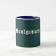 Großartige schottische Clan-Tasse im klassisch blauen und grünen Montgomery/Montgomerie karierte Muster. Alte Welt Stil Text in weiß liest Montgomery und ist anpassbar, um zu lesen, was Sie gewollt.
