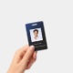 Personalize this stylish blue gradient employee ID badge template with your photograph, custom text. All the modern clear white script on the front and deep blue script on the back is editable. This minimalist professional employee name tag template will give your clients a great impression. Customize your name, profession, address, email, website and more with this classy photo ID. The dark blue and black name tag would be perfect for a cyber security specialist, financial advisor, IT consultant, property manager, lawyer or doctor.