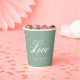 Papier Becher mit dem Wort "Liebe" in stilvollem, kursiven Typ und eine bearbeitbare Hintergrundfarbe (klicken Sie auf anpassen, gehen Sie zur "Auto Warping, Wrap"-Ebene und ändern Sie die Hintergrundfarbe). Ideal für Polterabende, Verlobungen und Hochzeitsfeiern. Personalisieren Sie es, indem Sie den Platzhalter-Text durch Ihre eigenen Informationen ersetzen. Für weitere Optionen, wie zum Beispiel den Schriftart zu ändern und ihn zu vergrößern oder zu verändern, klicken Sie auf den Button "Anpassen". *Bitte beachten Sie, dass das Zazzle-Wasserzeichen, das in der Zoomvorschau angezeigt wird, NICHT auf dem gedruckten Endprodukt erscheint. © Rosewood and Citrus