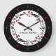Change the background color of this kitchen clock to go with your decor - retro style vegetables in a circle around a clock with red notches for hours. Change or remove the text.