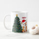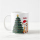 Dieser wunderschöne Pembroke Walisisch Corgi Hund hat seinen Kopf in einem niedlichen Hut des Weihnachtsmanns gekippt. Die Jungfrau sitzt vor einem hübschen Weihnachtsbaum, der mit farbenfrohen Ornamenten geschmückt ist. Personalisieren Sie den Namen Ihres Haustieres in einem hübschen Kursiv unter dem wunderbaren zeichn meiner Lieblingshündin auf einer festlichen Tasse.
