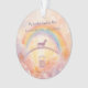 This keepsake ornament features a soft rainbow sky, dachshund silhouette, and fading paw prints. Add your pet’s name and dates. Includes a Spotify® QR code for a playlist of healing music. QR is optional during customization.