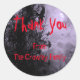 Ein ganz persönlicher Dankeschön-Aufkleber mit roten, kratzigen Buchstaben, gotischen Raben, scheußlichen Bäumen und einem bewölkten Vollmond mit einem lila, verstaubten Himmel.