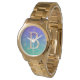 Modern colorful graphic gradient background in blue and green with gold and glitter details.