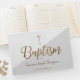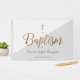 Custom Elegant Gray Gold Cross Baby Taufe Gästebuch