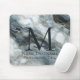 Custom Elegant Monogram Blue Gray Black Marble Mousepad