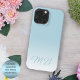 Zeitgenössisches helles Aqua aquamarin Meeresblau gefärbte Handy Gehäuse aus Monogramm. Mit Raum zum Anpassen mit einem Namen Monogramm oder Initialen Ihrer Wahl. Schönes, modernes und stilvolles Cover für den Trend-erfahrenen und kunstliebenden angesagten Trendsetter, der einen schlichten, aber künstlerischen Liebhaber des Motivs genießt, der will, sein Handy vor Staub und Schmutz, Abnutzung und Tränen zu schützen. Dieses Design ist erhältlich in Apple iPhone 6, 7, und 8 Plus, 10 oder X, XR, XS, 11, 12, 13 Mini, 14, 15 Plus, und Pro Max Handy Hüllen. Zeigen Sie Ihren Stil, sehen Sie modern aus und fühlen Sie sich stilvoll mit einem einzigartigen Design auf einem mobilen Zubehör Ihrer Wahl.